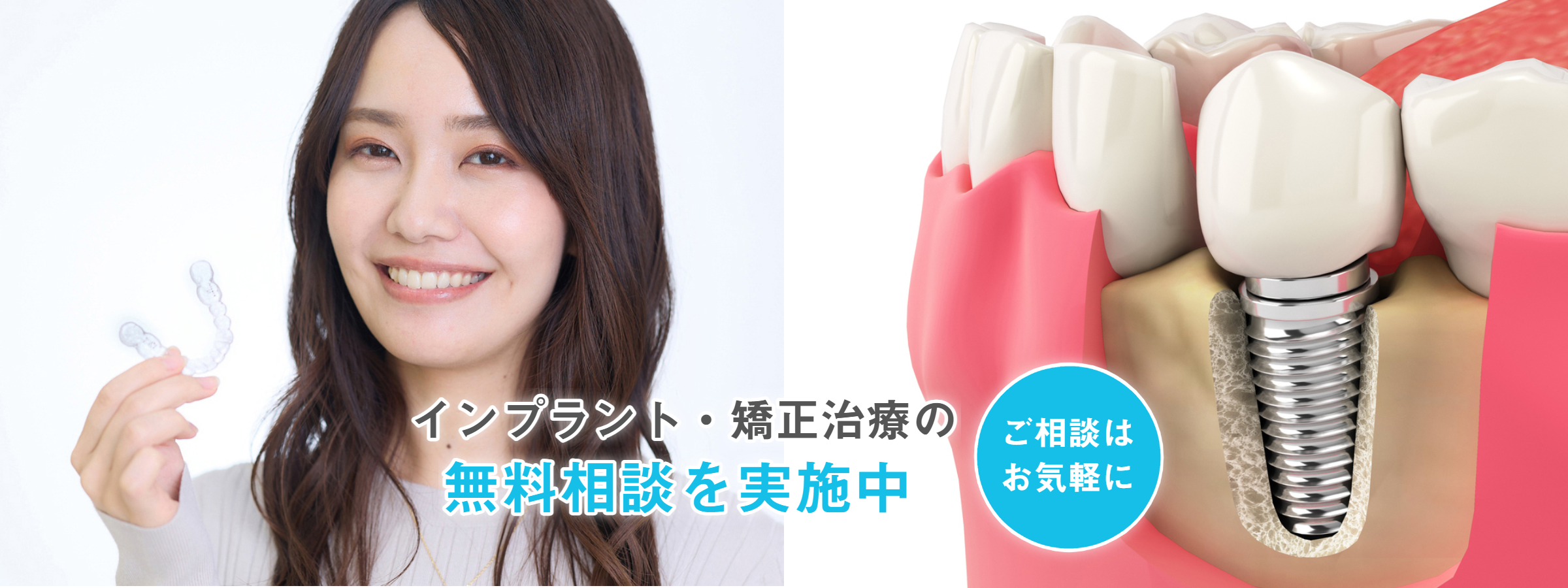 インプラント治療や矯正治療をお考えの方に、初回のみ無料相談を行っています。