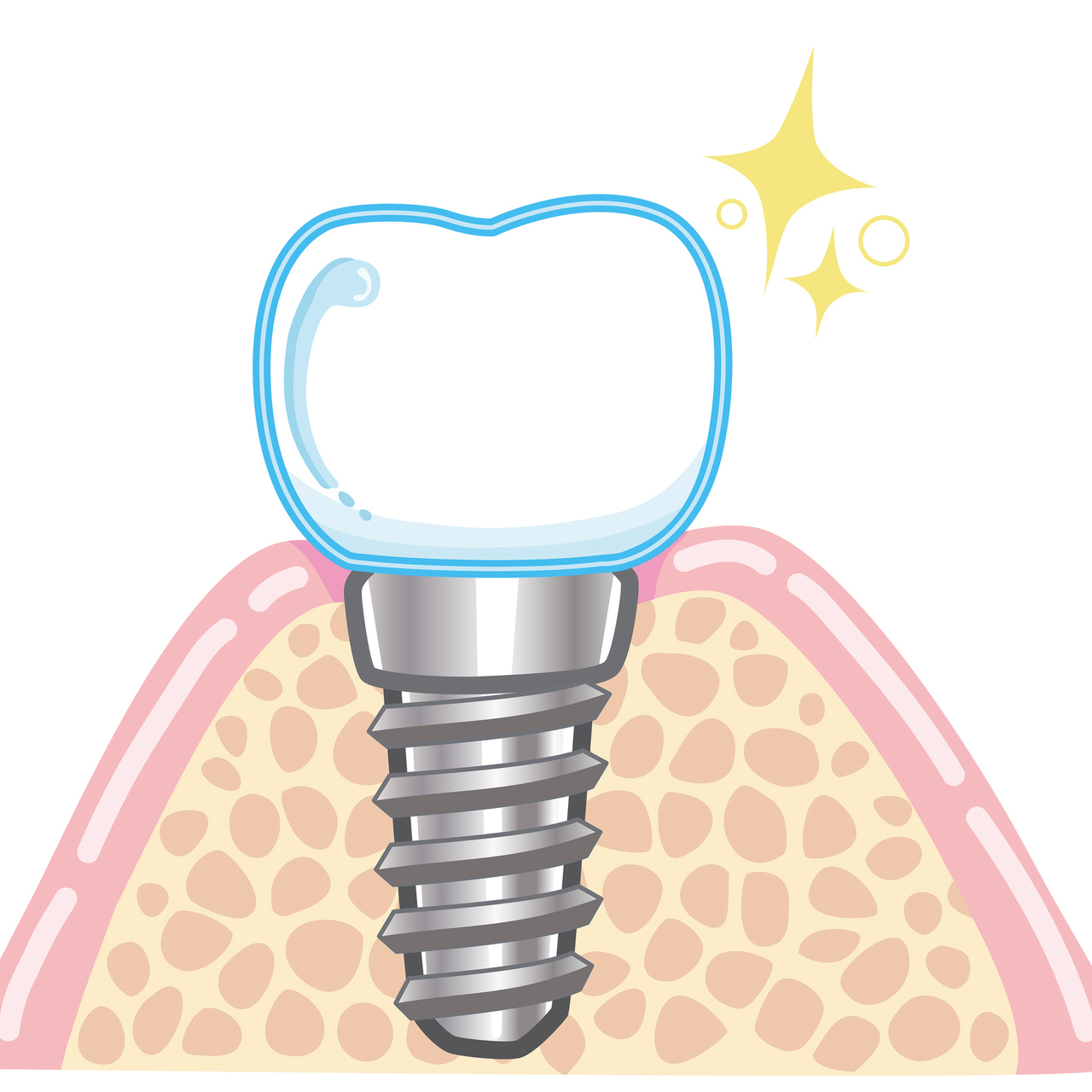 手術時間はわずか5~10分程度。通常なら2回の手術が必要ですが、フラップレス手術は1回で完了するため、お身体への負担が軽くなります。