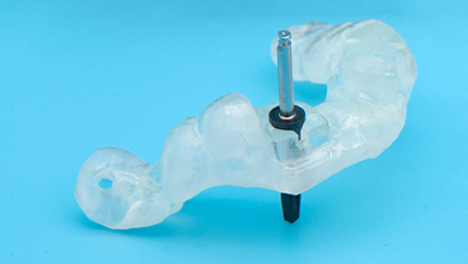 当院では事前のシミュレーションを徹底し、インプラントを埋め込む位置を手術前にしっかりと確認。さらにシミュレーション結果をもとに、患者さま一人ひとりに合わせた「ガイド」という器具を作製します。手術ではこのガイドに沿って処置を行うため、計画通りの位置にインプラントを埋め込むことが可能です。